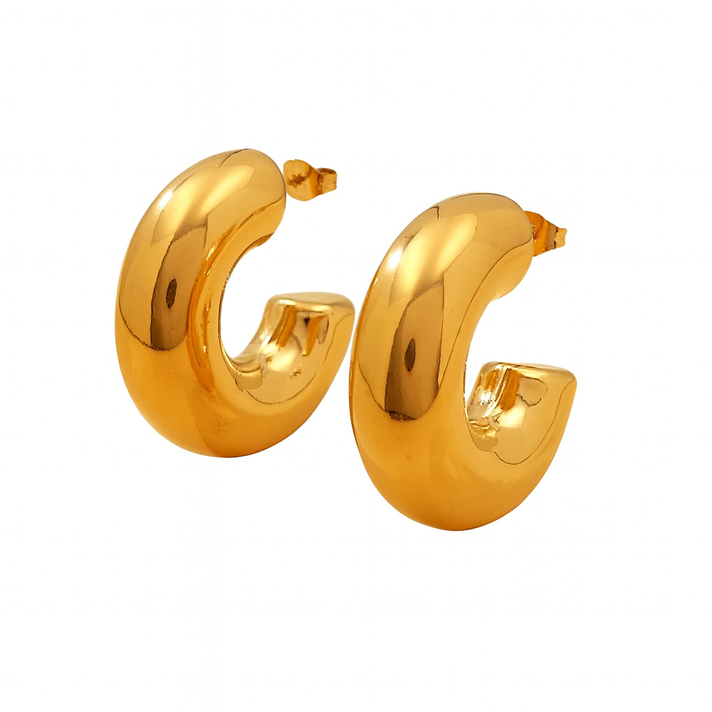 Make a powerful statement with The Thick & Thriving Hoops — bold, substantial, and effortlessly chic. These thick gold hoops are designed to bring weighty style and timeless edge to any look.