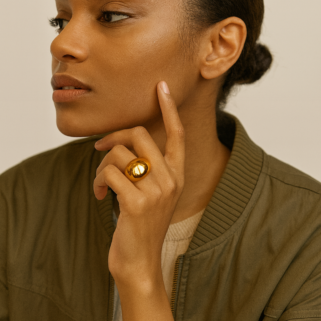 Make a statement without saying a word — The Titan Ring is the ultimate bold and chunky gold piece. With its thick, solid band and commanding presence, this ring delivers powerful vibes and modern luxury in one sleek package.