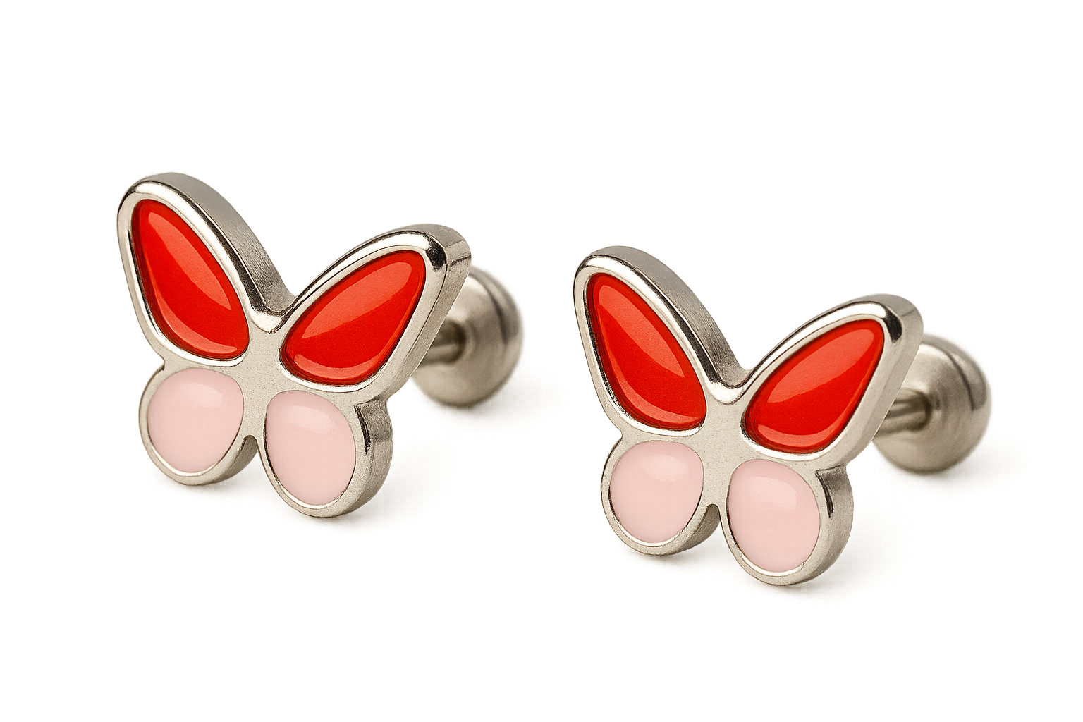 Butterfly Design: A delicate butterfly with red and pink enamel detailing — the perfect mix of feminine and fun.