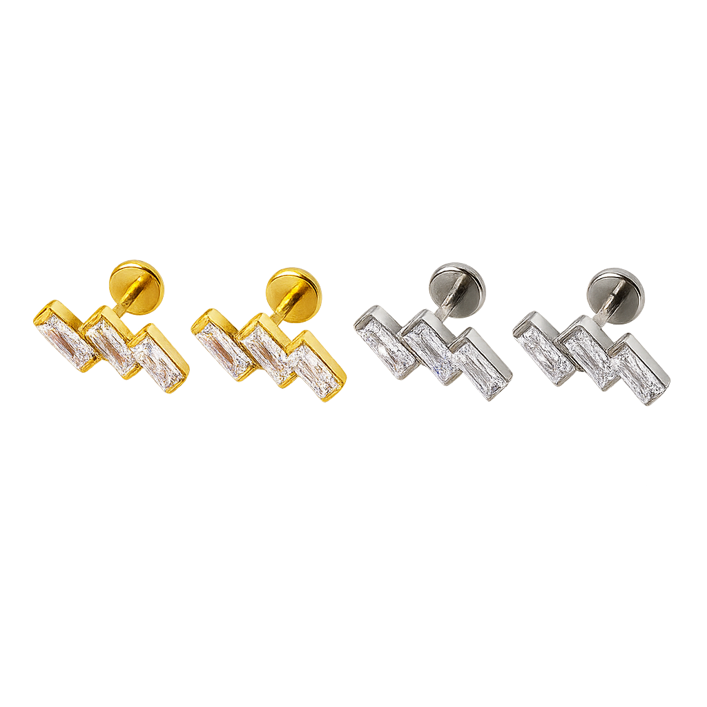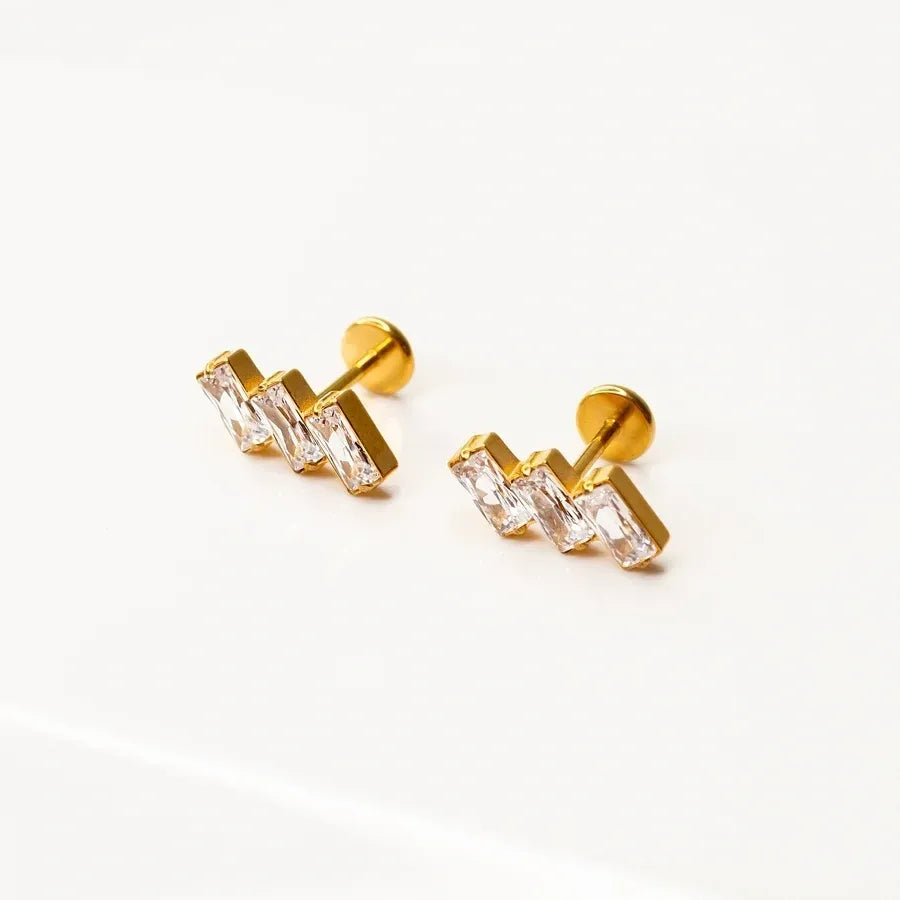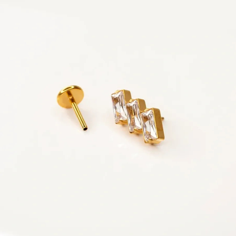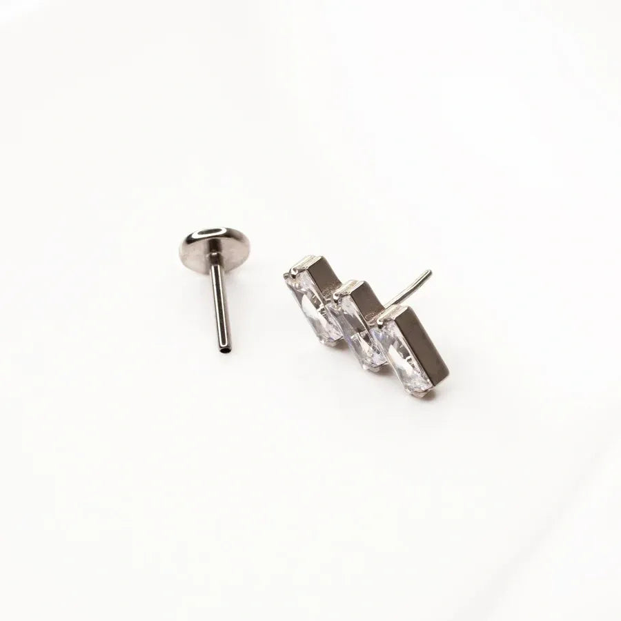 Are you in search of stylish and comfortable earrings? Look no further than our Slanted Diamond Trio Flat Back Earrings, crafted from surgical-grade titanium.