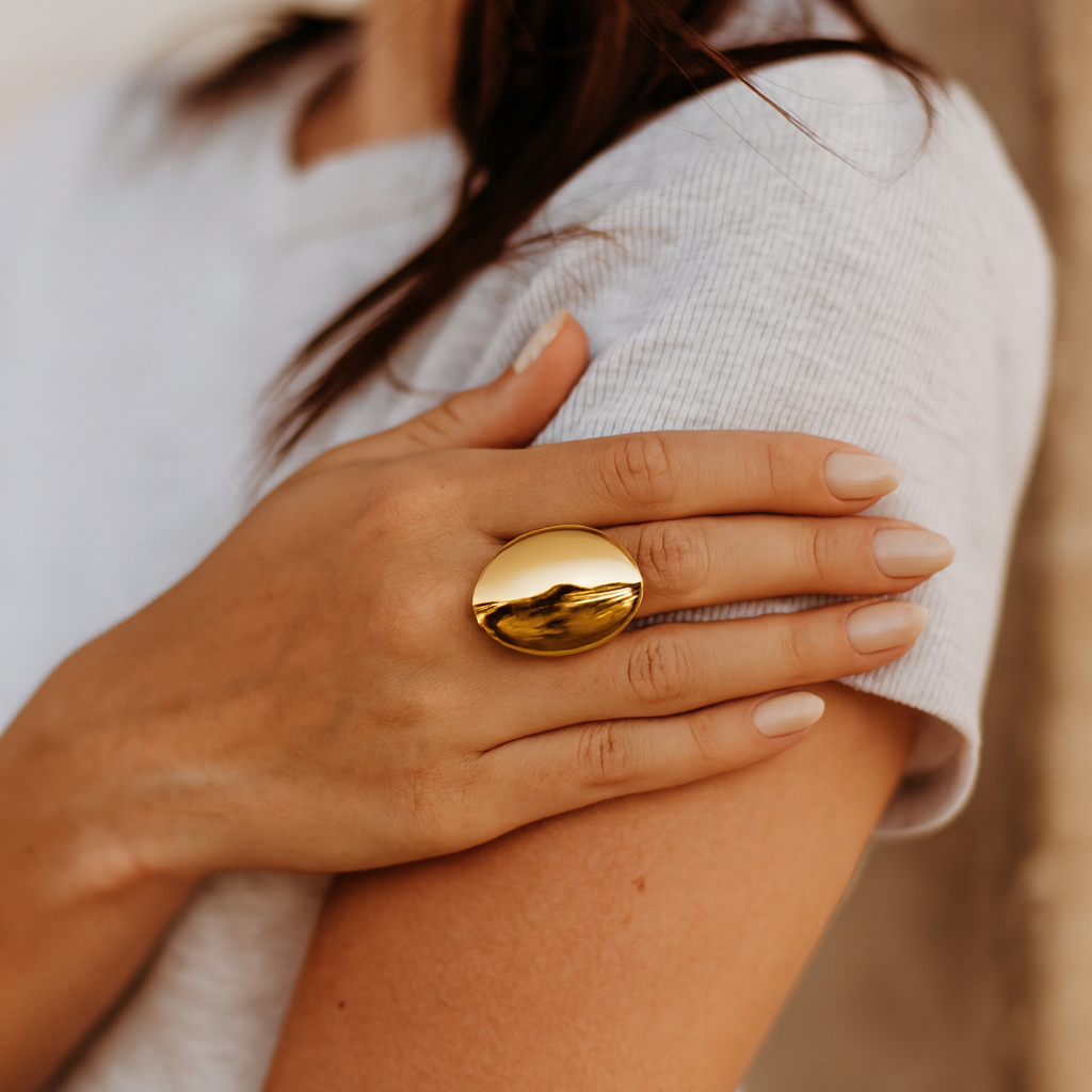Chunky Gold Band: Strikingly bold with a smooth, curved profile — designed to stand out without saying a word.
